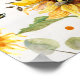 "Sunflower Bee Rustic Wood Yellow Birth Stats Baby Poster". Poster de arte mural con las estadísticas de nacimiento de su bebé: nombre completo, fecha, hora de nacimiento, peso y longitud se personalizan fácilmente utilizando los campos de plantilla. Audrey Jeanne Roberts, artista y diseñadora con licencia internacional, pintó madera rústica blanca con girasoles, vegetación de hojas de eucalipto, follaje seco y abejas con burbujas. Copyright.