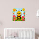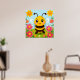 Un ilustracion caprichoso de una abeja sonriente entre flores coloridas florecientes, que capturan el encanto de la naturaleza y los momentos alegres con un toque de ligereza caricaturista.