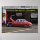 Imagen del rojo Jaguar mk.2. bonnet abierto, siendo atendido en el garaje