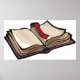 Este diseño es un libro abierto. El libro está abierto con un marcador de cinta roja. Este diseño de libros abiertos se ve genial en este Poster