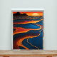 Esta fascinante obra de arte abstracta presenta una vibrante interacción de tonos naranjas, azules y negros, que evocan la sensación de un paisaje cubierto de sol. Los patrones giratorios y las formas orgánicas crean una sensación de profundidad y movimiento, invitando al espectador a explorar sus complejidades. Perfecto para añadir un toque de arte moderno a su casa o oficina.