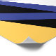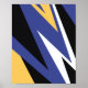 Una obra de arte abstracta vibrante que muestra formas geométricas nítidas con colores contrastantes en negrita: negro, azul, amarillo y blanco. El diseño angular crea un sentido dinámico de movimiento, evocando energía e intensidad. El uso de líneas nítidas y el bloqueo de colores vibrantes añade un aire moderno y visualmente cautivador a la composición.