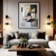 Arte abstracto geométrico con formas circulares y rectangulares en tonos neutros de gris, beige y negro. Texturas que recuerdan al hormigón y la piedra. Estilo minimalista sofisticado. Perfecto para decoración moderna y oficinas. Diseño atemporal que equilibra forma y textura en composición elegante y arquitectónica.