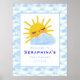 Throw the cutest "You are my sunshine" themed baby shower ever with this adorable personalized baby shower poster welcome sign decoration. Welcome your guests with this custom blue and white, sunshine and cloudy sky banner. This baby shower welcome sign is fully customizable. To edit the text, click "personalize this template". Graphics used in this design were hand drawn by OhMyStarling making it a unique piece for your sunshine baby shower theme. This baby shower decoration features a cute textured smiling sun peeking out from behind a fluffy rain cloud illustration and a fun abstract blue and white cloud pattern.