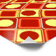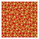 Abstract geometric pattern in red and yellow tones, with a swirl effect.