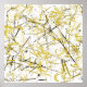 Composición abstracta de aleatoriedad inspirada en el pollock en una paleta de mostaza y marrón.