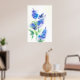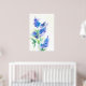 Arte poster imprimir abstracto Flores de Lilac en azul, violeta, verde sobre fondo blanco, de la pintura acuarela original.