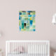 First House In A Settlement by Paul Klee. Abstract watercolor painting of a window surrounded by green, blue and turquoise blocks or squares.