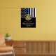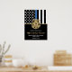 Este diseño incluye una bandera de la fuerza policial con rayas blancas y negras, y una delgada franja azul. Una gran manera de felicitar al nuevo graduado de la academia de policía. Personalizar con el nombre del oficial encargado de la aplicación de la ley graduado en oro. ¡Celebra este hito con estilo!