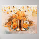 Postal del Día de Acción de Gracias occidental con botas de vaquero, flores y calabazas.