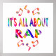Los amantes de la música rap disfrutarán de este diseño colorido con las notas musicales y las palabras Todo se trata de Rap.