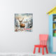 Sencillos Navidades de acuarela pastoral con reno acuático en la selva nevada y bayas huecas. Guión festivo rojo "Feliz Navidad"