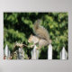 Una de una serie de impresiones que muestran una adorable ardilla gris en una valla.