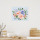 Póster Acuarela Azul Rosa Hydrangea Peony Spring Floral