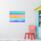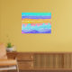 En azul turquesa, marina, ultramarina, dorada, amarilla, rosa, hay un paisaje de acuarelas que alegra la decoración. Se siente un poco acuático.
