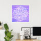 Un Poster colorido con una mandala blanca floral sobre un fondo violeta color agua. Los cepillos violentos realzan este hermoso Mandala Blanco para inspirar pureza y espiritualidad. Violet promueve la armonía de la mente y las emociones, contribuyendo al equilibrio mental y la estabilidad, la paz de la mente, un vínculo entre el mundo espiritual y el físico, entre el pensamiento y la actividad. Original pintado por SunFreeStar.