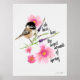 Hermoso ave de canto de garbanzos con capucha negra pintada en acuarela con flores rosadas y violetas pintadas y pronunciadas por la artista Jennifer Steffen. El texto dice "oh cómo me encantan los dulces sonidos de la primavera". El arte se imprimirá en una variedad de productos como tazas, azulejos, posters y lienzos, bolsos de té, puzzles, tarjetas de saludo, decoración casera y más. Diseño de Jenns Emporium. Contáctanos para preguntas o productos adicionales con este artículo.