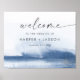 Este moderno poster de bienvenida color azul boda es perfecto para un boda contemporáneo y elegante. La colección de diseño minimalista, clásico y elegante presenta trazos de pincel de color agua en tonos bonito. Personalizar el poster con el nombre de la novia y el novio, y la fecha del boda.