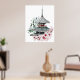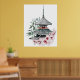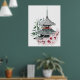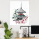 Póster Acuarela Sakura Blossom Templo Japonés de Bambú
