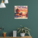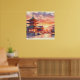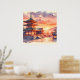 Póster Acuarela Templo japonés tradicional al atardecer