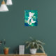 Los tonos oceánicos acuardan poster de silueta de silueta blanca de sirena de sirena.