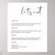 Este menú presenta un diseño minimalista moderno y un diseño manuscrito. Edite con facilidad *most* frases para que coincidan con sus necesidades. Este menú es la combinación perfecta de su sencilla ducha de bebé, su ducha de novia, su boda, su jubilación o cualquier otro evento. Este menú de tabla presenta una sencilla combinación de color blanco y negro, pero todos los colores son 100% editables para que coincidan con su estilo.