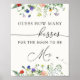Adivina cuántos besos para la futura Sra. Señal con un borde de flores silvestres y vegetación. Colección coincidente Campos de flores silvestres y abejas melíferas en la tienda Adore Paper Co. Zazzle.