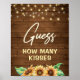 Crea tu propio letrero y tarjetas de juego "Adivina Cuántos". Llena un frasco con cacahuetes, besos, dulces, frijoles o lo que se te ocurra y deja que tus invitados adivinen cuántos hay. También se pueden pedir tarjetas de adivinanza coincidentes. Hecho para combinar con mi colección Feliz Girasol.