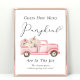 Señal de juego lindo para la ducha de la bebé con "Adivinen cuántas calabazas" escribió una tipografía gris simple y un guión elegante con un latido cardíaco y acuarelas de un camión vintage cargado con calabazas y flores rosas y cremas. Coloque un frasco lleno de calabazas de caramelo debajo y pida a sus invitados que adivinen cuántos están en el frasco. El ganador será el invitado que se acerque más sin acercarse. Hay tarjetas de adivinación disponibles en nuestra colección de ducha de bebé camionetas de calabaza rosa.