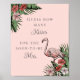 Este tropical "Adivinen cuántos besos para la futura señora" poster de juegos de ducha de novias incluye ilustraciones con temas de flamingo tropical a mano con tinta negra, exhibiendo flamencos rosados, hibiscos y flores de jazmín y hojas tropicales. Elegante fondo rosa rubor.