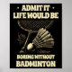 Póster Admit It Life Would Be Boring Without Badminton Pl