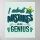 Celebra tus errores con este elegante poster de pared que presenta la cita "Admito que mis errores son geniales". Abraza tus imperfecciones y deja que tu creatividad brille con esta audaz declaración que desafía la noción de que los errores siempre son negativos. Ya sea que seas artista, empresario o simplemente alguien a quien le gusta pensar fuera de la caja, este poster es el recordatorio perfecto de que a veces las ideas más grandes vienen de fuentes inesperadas. ¿Tienes deseos de diseño personal específicos? No dude en ponerse en contacto conmigo blackflyoleg@gmail.com