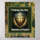 Presentamos el Poster "Apuntando al Escudo de la Fe", una sorprendente mezcla de arte visual e inspiración espiritual, inspirada en los efesios 6:16. Mejora tu espacio vital con este poster cautivador que sirve como recordatorio constante de la fuerza protectora encontrada en la fe. Presentando el pasaje de las escrituras de Efesios 6:16, "Sobre todo, tomando el escudo de la fe, con el cual seréis capaces de acallar todos los dardos feroces de los malvados", este poster infla a tu hogar con profundo significado y empoderamiento. Ya sea que se exhiba en su sala de estar, dormitorio o estudio, le añade un toque de significado espiritual a su decoración. El Poster de Zazzle, diseñado con papel mate de alta calidad e impresión de precisión, "Tomando el Escudo de la Fe", ofrece durabilidad e impacto visual. Su generoso tamaño de 20 x 24 pulgadas asegura que se convierta en un punto focal en cualquier sala, mientras que el audaz pasaje de las escrituras llama la atención e invita a la reflexión. Ya sea usado para inspiración personal o como un regalo reflexivo para un amigo o miembro de la familia, el Poster "Apuntar al Escudo de la Fe" seguramente inspirará y animará. Abraza el poder protector de la fe y déjenlo adornar tus paredes con gracia y resiliencia.
