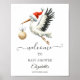 Una linda invitación de ilustracion de cigüeñas dice que un bebé está en camino. El diseño incluye una cigüeña dulce dibujada a mano con sombrero de Santa y una bola de Navidad. Personalizable completo con los detalles de su evento, es ideal para una encantadora celebración de temporada, añadiendo un toque dulce y elegante para dar la bienvenida a su bebé.