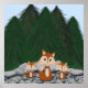 Presentamos a la familia de zorros. Mamá y sus dos bebés se relajan en una pila de rocas cerca del río. Basado en una pieza de arte original de © One Artsy Momma.