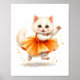 Póster Adorable gatito blanco bailarín en tutú naranja