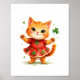 Póster Adorable Gatito Naranja con Vestido de Trébol de C