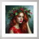 Póster Adorable Señora de Rojo con Hojas de Acebo
