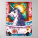 Un unicornio adorable con un mané azul y violeta empapado en la bañera