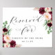 Adore Pink & Burgundy Floral Wedding Recepción reservada para y personalizado poster de letreros de invitados - con las palabras "reservadas para" escritas en un hermoso y sofisticado guion de caligrafía. Un diseño elegante, moda, pero sencillo, con un tipo de letra negro y cualquier color de fondo que elija. Simplemente haga clic en el enlace personalizar adicional, que se muestra bajo el área de personalización de texto a la derecha, y elija el fondo de color personalizado. Esta plantilla de señas hace que sea fácil y rápido crear sorprendentes adiciones a tu decoración boda. Si necesitas algo diseñado que ya no esté disponible, por favor envíame un mensaje en zazzle. ~ Revise mi tienda o colección a continuación para ver más señales complementarias para su boda