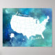 Sigue el rastro de dónde has viajado. Puede colorear en los estados o realizar un seguimiento de sus viajes. De cualquier manera, se verá genial con este fondo de color azul y violeta.