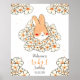 Póster Affiche anniversaire personnalisé lapin fleurs