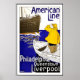 Afiche de época Imprimir Filadelfia Queenstown Liverpool Línea Americana