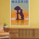 Afiche de la cosecha de Madrid con fondo de textura naranja y azul con skyiline en blanco