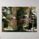 Afiche de viaje de la encantadora Venecia, Italia, con una fotografía realzada con un góndolo junto a un edificio de ladrillo de flores. Una obra de arte en la pared de gran aspecto.