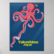 Afiche de viaje del pulpo japonés de Yakushima con un bonito pulpo al estilo personalizado.