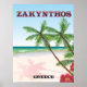 Afiche de viaje de Zakynthos Grecia de una hermosa playa blanca de arena.