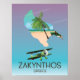 Póster Afiche de viaje del mapa de Grecia de Zakynthos