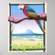 Afiche de viaje del loro de la playa de Polinesia.