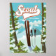 Póster Afiche de viaje para esquiar en Seúl, Corea del Su